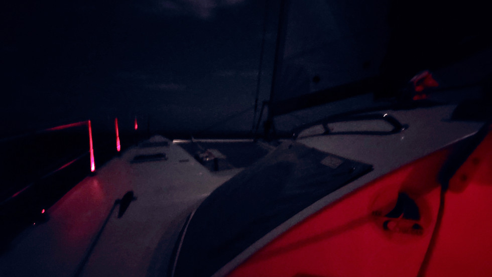 Nous ne leur donnons pas raison : nous réussissons à semer les nuages, retrouvons du vent mais cette fois au bon plein, c’est-à-dire légèrement de face. Là encore, le bateau se comporte bien et notre progression est bonne.